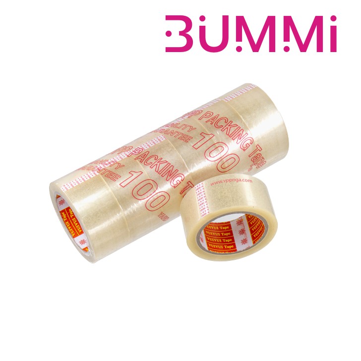 Băng Keo Trong, Đục 100Ya (6 Cuộn/ Cây) lõi mỏng Cân nặng: 1.2 kg/ 6 cuộn 1 cây gồm 6 cuộn - Băng keo độ dính cao, đạt chuẩn xuất khẩu. - Dùng dán thùng, đóng gói, ... - Màu trong và vàng đục đồng giá