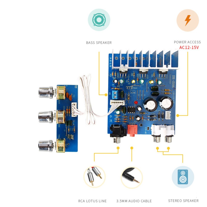 2.1 Kênh 15W x 2 + 30W TDA2030 Chip AC12V-15V Bảng khuếch đại loa kép Âm thanh nổi phụ cho loa tự làm Amp Các tính năng: Bảng sử dụng 3 chip TDA2030 cổ điển để khuếch đại. Hiệu suất âm thanh: treble tinh tế, mềm mại và trong suốt. Sự mạnh mẽ, đầy đủ và mạnh mẽ. Ngoài ra, bo mạch sử dụng thiết kế chia nhỏ, 2 kênh cho các kênh trái và phải, và 1 kênh cho loa siêu trầm. Việc lắp đặt rất dễ dàng, có thể kết hợp với nhiều loại loa, DIY, v.v., rất thích hợp để lắp ráp những người đam mê điện tử và âm thanh.