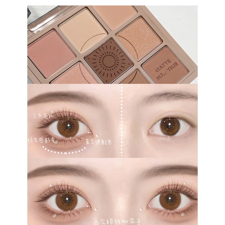 Giới thiệu Bảng phấn mắt 9 màu hiệu ứng lì ánh ngọc chống thấm nước và mồ hôi lâu trôi