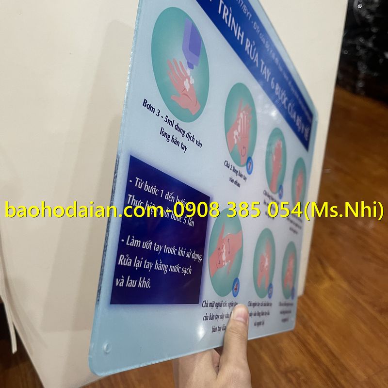 Giới thiệu Bảng quy trình rửa tay 6 bước đúng tiêu chuẩn chất liệu mica KT30x40cm