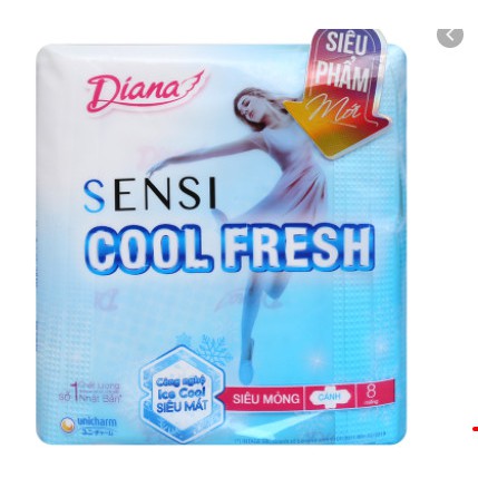 Băng vệ sinh DIANA COOL FRESH 8 MIẾNG MẪU MỚIBăng vệ sinh DIANA COOL FRESH 8 MIẾNG MẪU MỚI Giá TPRO