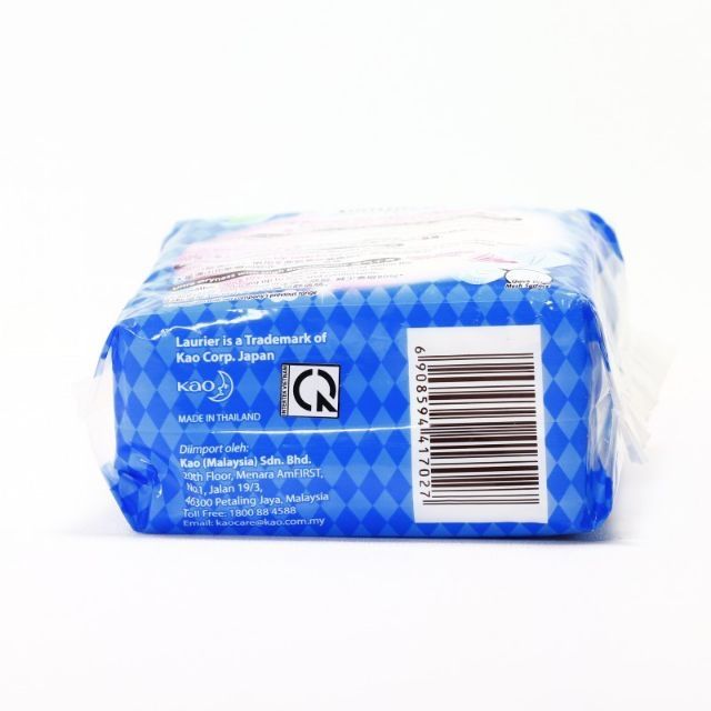 Thành phần: Bột giấy, vải không dệt, màng đáy, giấy, keo dính, giấy không dính, bao gói, hạt thấm hút, miếng dán bao gói. Cách bảo quản: Tránh nhiệt độ cao, ánh nắng trực tiếp. Cách sử dụng: Bóc lớp bao ngoài không dính ra và dán miếng băng vào đáy quần lót. Hạn sử dụng: 3 năm kể từ ngày sản xuất. Quy cách đóng gói: Gói 8 miếng. Sản xuất tại: Kao Industrial (Thailand) Co., Ltd. Xuất xứ: Thái Lan