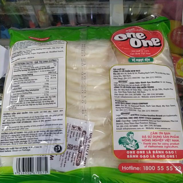 Mỗi chiếc bánh gạo One One có chứa Protein, hàm lượng chất béo thấp, các khoáng chất khác cần thiết và có lợi cho cơ thể bạn. Hướng dẫn bảo quản: Bảo quản nơi khô ráo, tránh ánh nắng trực tiếp HSD: 12 tháng Quý khách hàng muốn biết thêm thông tin chi tiết của sản phẩm vui lòng inbox cho Shop để được tư vấn 1 cách tốt nhất! Liên hệ hỗ trợ trực tiếp Xuan Luan Mart: 094.386.1992