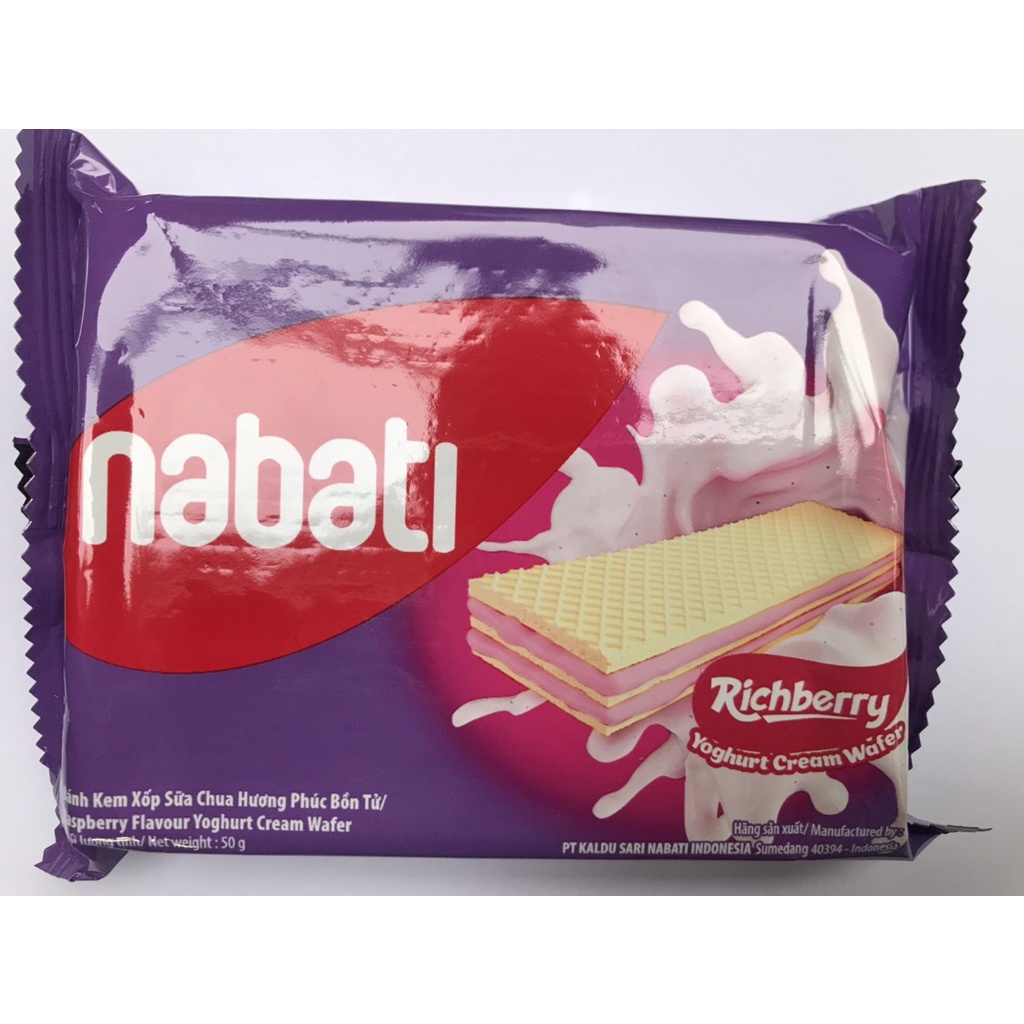 Bánh Kem Xốp Sữa Chua Richberry Nabati Yoghurt Cream Wafer có vị xốp giòn của lớp vỏ bánh hòa quyện vào lớp kem Sữa Chua Hương Phúc Bồn Tử, đậm đặc tan chảy ngay trong miệng hứa hẹn sẽ đem đến cho bạn độ ngon không đâu sánh bằng. Sản phẩm mang đến cho bạn cảm giác ngon miệng đồng thời giúp bạn bổ sung những dưỡng chất tốt cho cơ thể, cung cấp năng lượng cần thiết cho bạn hoạt động mỗi ngày. Ngoài ra, sản phẩm không chứa hóa chất, chất bảo quản độc hại, đảm bảo an toàn sức khỏe người tiêu dùng. Thành phần: bột mì, đường, dầu thực vật, bột whey, kem sữa chua hương vị phúc bồn tử (chứa chất điều vị và màu thực phẩm), maltodextrin, chất nhũ hoá (lecithin), muối, bột sữa, chất tạo xốp, vitamin (A, B1, B2, B6, B12). Hướng dẫn sử dụng: Dùng trực tiếp Quy cách: Gói 50g Hạn sử dụng: 1 năm kể từ NSX Địa chỉ kho: 28/36/1 Lương Thế Vinh, Phường Tân Thới Hòa, Quận Tân Phú, TP. Hồ Chí Minh Khách hàng mua sỉ liên hệ 0901 656897 để được giá tốt
