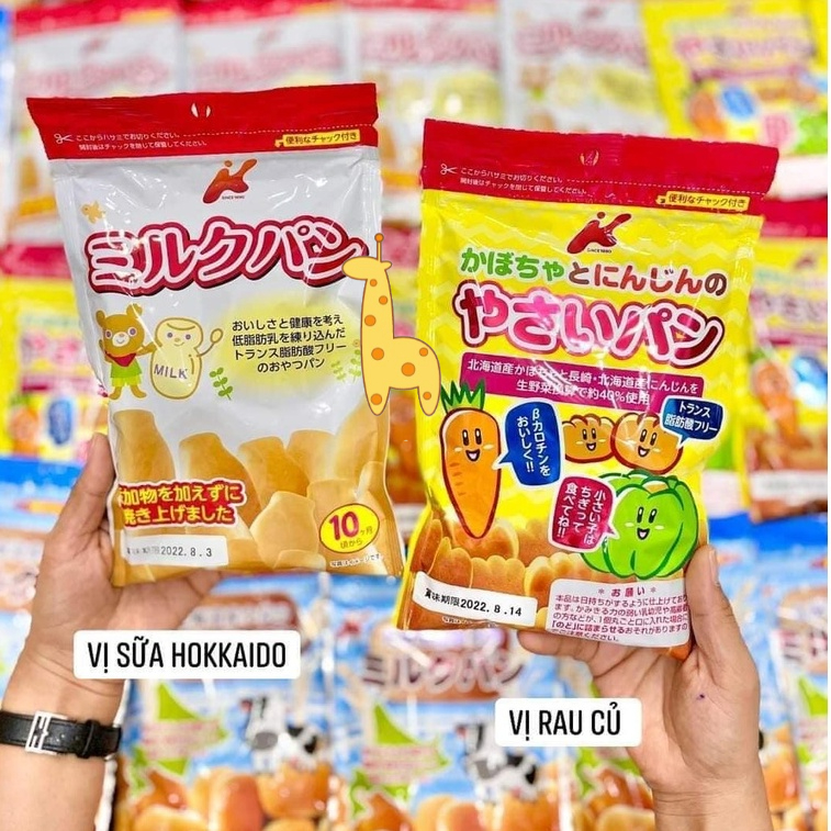 BÁNH MÌ TƯƠI CHO BÉ 🍞 Bây giờ bánh mì mình mua ở tiệm thì thường sản xuất cho người lớn, còn loại dành cho bé thì hầu như không thấy nhỉ! Mẹ Cam có ngay nhaaa Bánh mì tươi Canet Nhật Bản Ăn thơm và ngon cực kỳ, dễ tan trong miệng lắm. Với 3 vị: - Vị rau củ 🥕 Bổ sung bí đỏ Hokkaido và Cà rốt Nagasaki/Hokkaido cung cấp đạm, sắt, canxi, magie, Alpha và Beta caroten,... Dành cho bé từ 1 tuổi - Vị sữa lúa mì 🍼 🌾 Bổ sung bột lúa mì Hokukaido Cung cấp đạm, canxi, lipid, magie, chất xơ,... Dành cho bé từ 1 tuổi - Vị sữa 🍼 Bổ sung sữa tươi tách béo Cung cấp đạm, lipid, canxi, magie, chất xơ,... Dành cho bé từ 18 tháng ĐẶC BIỆT: - Không chứa axit béo chuyển hoá - Không chứa các phụ gia sau: chất bảo quản, chất làm ngọt tổng hợp, chất nhũ hoá, chất tạo màu. An toàn tuyệt đối cho sức khỏe của trẻ Xuất xứ: Nhật Bản Quy cách: túi zip bên trong có chứa 8-9 chiếc bánh