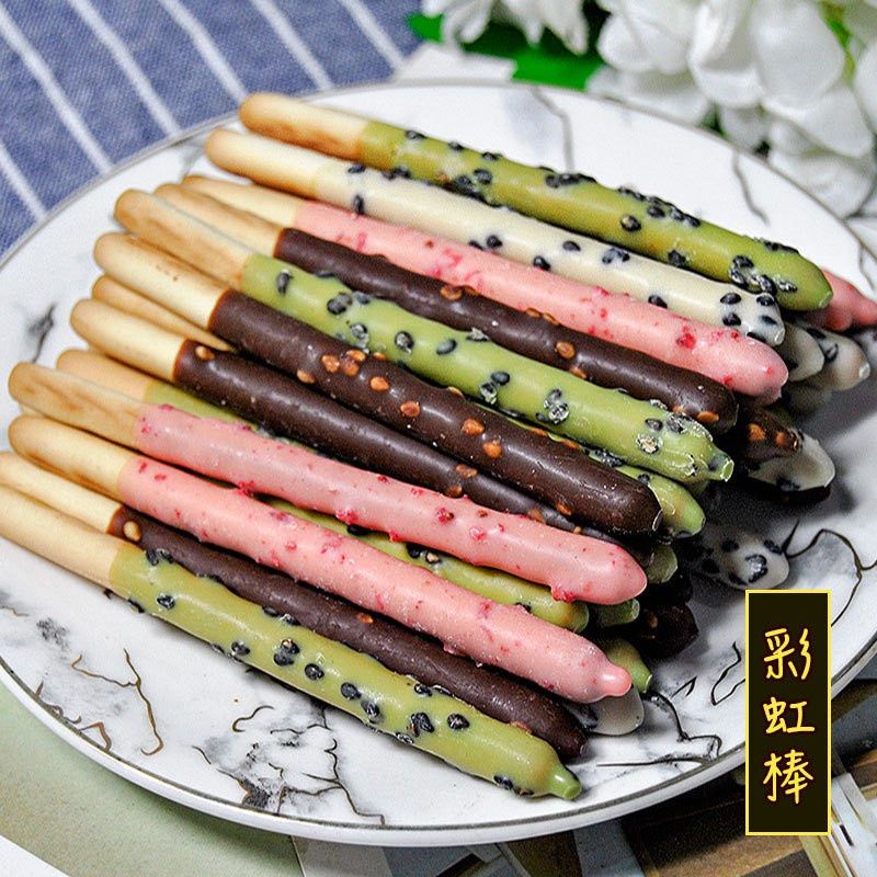 - Bánh quy que với ống que giòn ngon phủ các vị Socola, Matcha, Việt quất, Dây tây, Sữa chua tạo cảm giác thích thú khi ăn.Sự hòa quyện giữa chiếc bánh giòn rụm với chocolate thượng hạng được phủ lớp mè rang thơm lừng đem lại cảm nhận tròn vẹn cho thực khách.