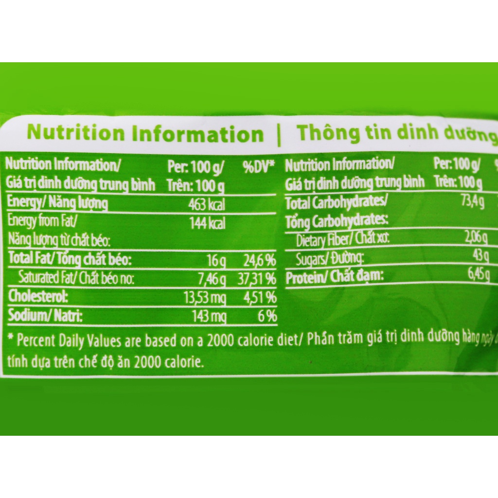 * * * Bánh quế Cosy Kinh Đô là một trong những loại bánh được nhiều người yêu thích vì dễ ăn, dễ bảo quản và hương vị thơm ngon, không quá gắt Khối lượng 135g Năng lượng 455 kcal/100g Thành phần Bột mì, đường, dầu cọ, bột whey, bột bắp, chất nhũ hoá (322(i)), đường glucose, hương thực phẩm tổng hợp (vani, lá dứa), muối, màu thực phẩm tổng hợp (160a(i), 133), màu thực phẩm tự nhiên (141(i)). - Sản xuất từ nguồn nguyên liệu an toàn Bánh Quế Cosy được chế biến từ những nguyên liệu thượng hạng với hương vị thơm ngon, hấp dẫn. Dây chuyền sản xuất khép kín cùng đội ngũ chuyên gia kiểm định chặt chẽ của Kinh Đô giúp mang đến cho người dùng những chiếc bánh chất lượng tuyệt hảo. - Bánh quế giòn, xốp, giàu dinh dưỡng - Bánh có hình ống độc đáo với những đường kem phủ đầy hấp dẫn. Vỏ bánh thật xốp, giòn tan, nhân kem socola thơm lừng, kích thích vị giác. Bánh quế chứa nhiều vitamin và khoáng chất giúp cho cơ thể trở nên khoan khoái, có thêm tinh thần làm việc. - Đóng gói tiện dụng - Sản phẩm được đóng gói kỹ lưỡng giúp bạn bảo quản bánh thật tốt khi chưa sử dụng hết. Với bao bì bắt mắt, Bánh Quế Cosy cũng có thể được dùng làm quà tặng thiết thực và ý nghĩa cho người thân, bạn bè. - Hướng dẫn sử dụng: Có thể ăn ngay không cần chế biến. - Cách bảo quản: Để nơi khô ráo, thoáng mát.