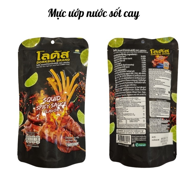 Giới thiệu BÁNH QUE VỊ TOMYUM / VỊ MỰC SỐT CAY DORKBUA BRAND GÓI 62g