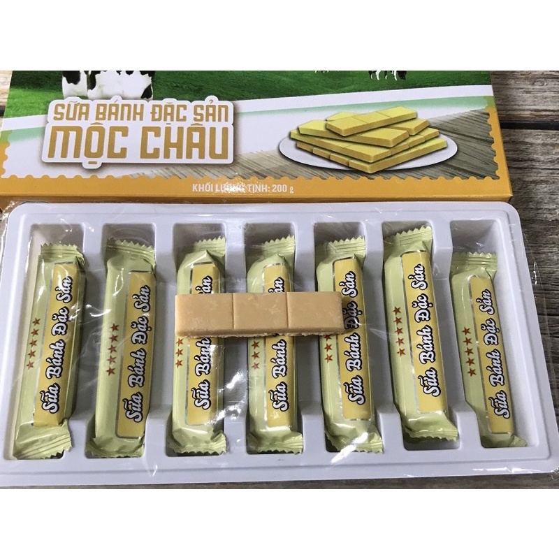 Sản phẩm bánh sữa cô đặc. Đem lại năng lượng ngay tức thời khi ăn. Thích hợp mang theo picnic, để trên xe… Sản phẩm thơm ngon đến từ công ty sữa Mộc Châu. Công ty có hơn 60 năm kinh nghiệm trong ngành chế biến sữa. Sữa bánh đặc sản Mộc Châu có thành phần từ sữa bò tươi và đường tinh luyện, được sản xuất trên quy trình hiện đại, đạt tiêu chuẩn vệ sinh an toàn thực phẩm.