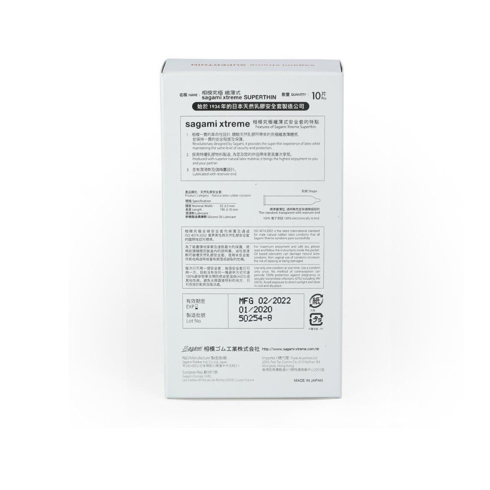 3. ƯU ĐIỂM SẢN PHẨM: - Không mùi: Công nghệ khử mùi cao su của hãng Sagami đến từ Nhật Bản cực tốt, với màu da trong suốt, lại không hề có mùi cao su khó chịu, thậm chí chống dị ứng với những người không ngửi được mùi cao su. - Độ bền cao, tự co giãn theo kích thước: Sagami #Xtreme-Super-Thin được làm từ cao su tự nhiên không mùi, có tính truyền nhiệt cực nhanh, độ bền cao, co giãn tốt theo kích cỡ cơ thể, giúp bạn thăng hoa trong cuộc yêu. - Chứa nhiều gel bôi trơn: Sản phẩm có chứa chất bôi trơn cao cấp, giúp nam giới dễ mặc đeo tháo báo, làm cho cuộc yêu trở nên trơn tru, gia tăng khoái cảm. Hãy thoải mái rút ra rút vào, thay đổi tư thế mà không sợ bạn nữ bị khô dát.