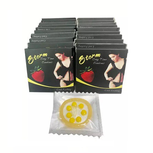 Bao cao su storm bi tạo sự tự tin và thoải mái. Storm có thuốc tăng cường cho nam giới sẵn trong bao, kéo dài thời gian quan hệ tình dục. - Đặc biệt đầu Bao cao su storm có một vòng 6 bi, tăng khả năng khoái cảm cho người bạn nữ khi quan hệ tình dục bởi 6 viên bi bằng cao su mềm mại. - Bao cao su storm Không gây tổn lại cho người bạn tình dù có rớt bi nếu quan hệ mãnh liệt .Bao cao su storm đẳng cấp đàn ông đích thực. * Tinh chất bạc hà mát lạnh khi đeo * Ưu điểm: giá thành bao cao su storm thấp. * Sản phẩm sản xuất tại Thái Lan. * Hộp 1 bao cao su.