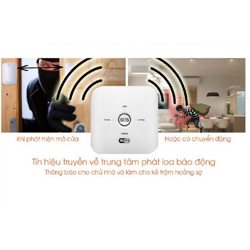 Bộ Báo Động Chống Trộm Wifi Sim GSM Tuya Smart Gọi Điện Nhắn Tin Về Điện Thoại, Chuông Báo Động An Ninh Qua Điện Thoại Sản phẩm bao gồm một 1 bộ trung tâm, 1 cảm biến chuyển động hồng ngoại, 1 cảm biến má từ mở cửa, 2 remote điều khiển, 1 loa báo động 12V. Nguyên lý hoạt động: Khi các cảm biến phát hiện có trộm đột nhập ngay lập tức sẽ truyền tín hiệu không dây RF 433Mhz đến trung tâm, bộ trung tâm sẽ hú còi báo động. Chuông hú với âm lượng lớn (lên đến 110 Db) sẽ làm cho trộm hoảng sợ và nhanh chóng tìm cách thoát khỏi nhà bạn, đồng thời gọi điện và nhắn tin đến điện thoại của chủ nhà qua sóng GSM và báo push đến app điện thoại qua sóng wifi hoặc 3G.