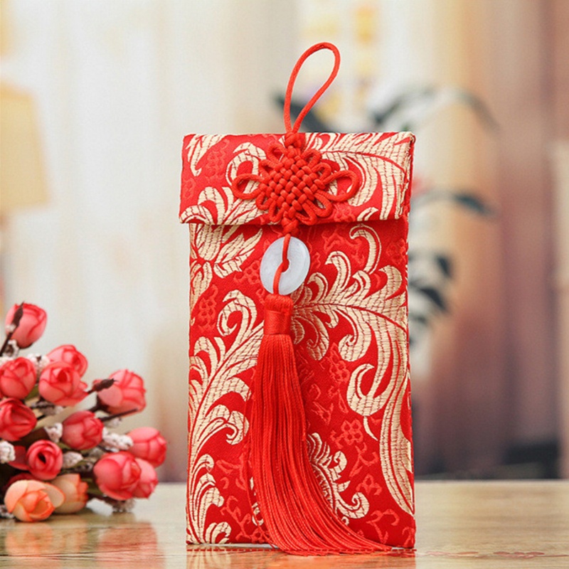 Đặc trưng: Chất lượng cao: Gấm lụa chất lượng cao với hình thêu lễ hội Trung Quốc, thân thiện với môi trường, cổ điển và sang trọng. Khác với bao lì xì giấy, có thể được tái sử dụng. Màu sắc: Màu đỏ là màu may mắn đối với người Trung Quốc, phong bao màu đỏ mang sức mạnh tích cực và tốt lành. Người nhận được phong bao màu đỏ sẽ cảm nhận được lòng tốt của bạn. Thiết kế tinh tế: Lụa thêu thổ cẩm Hoa văn Long và Phượng hoàng, nút thắt kiểu Trung Quốc với đồng xu và tua may mắn, tất cả những yếu tố may mắn của Trung Quốc trở nên sang trọng và cổ điển khác thường. Chất liệu lụa cao cấp: Bao lì xì được làm từ gấm lụa chất lượng tốt với hình thêu lễ hội Trung Quốc, Gấm lụa chất lượng cao với hình thêu lễ hội Trung Quốc, cổ điển và sang trọng. Các dịp thích hợp: phù hợp cho dịp Tết Nguyên đán, đám cưới, quà sinh nhật, thăm họ hàng, túi trang sức điện thoại hoặc các dịp đặc biệt khác.