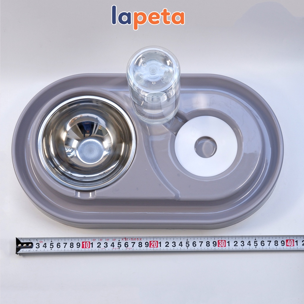 THÔNG TIN VỀ SẢN PHẨM BÁT ĂN CHỐNG KIẾN CHO MÈO Tên Sản phẩm: Bát ăn chống kiến cho mèo chó có hai ngăn đôi bát inox kèm bình nước tự động Kích thước (dài x rộng x cao): - phần đế: 40.5x23x7cm - toàn bộ, tính cả chai nước: 40.5x23x21cm Bát inox: Dung tích 400ml, Đường kính miệng bát 14cm, cao 4cm Chai nước: Dung tích 500ml, cao 17cm, đường kính 7cm, cổ chai loại D28mm Chất liệu: Nhựa PP, inox Màu sắc: Hồng, Xanh, Ghi xám Trọng lượng: (g)