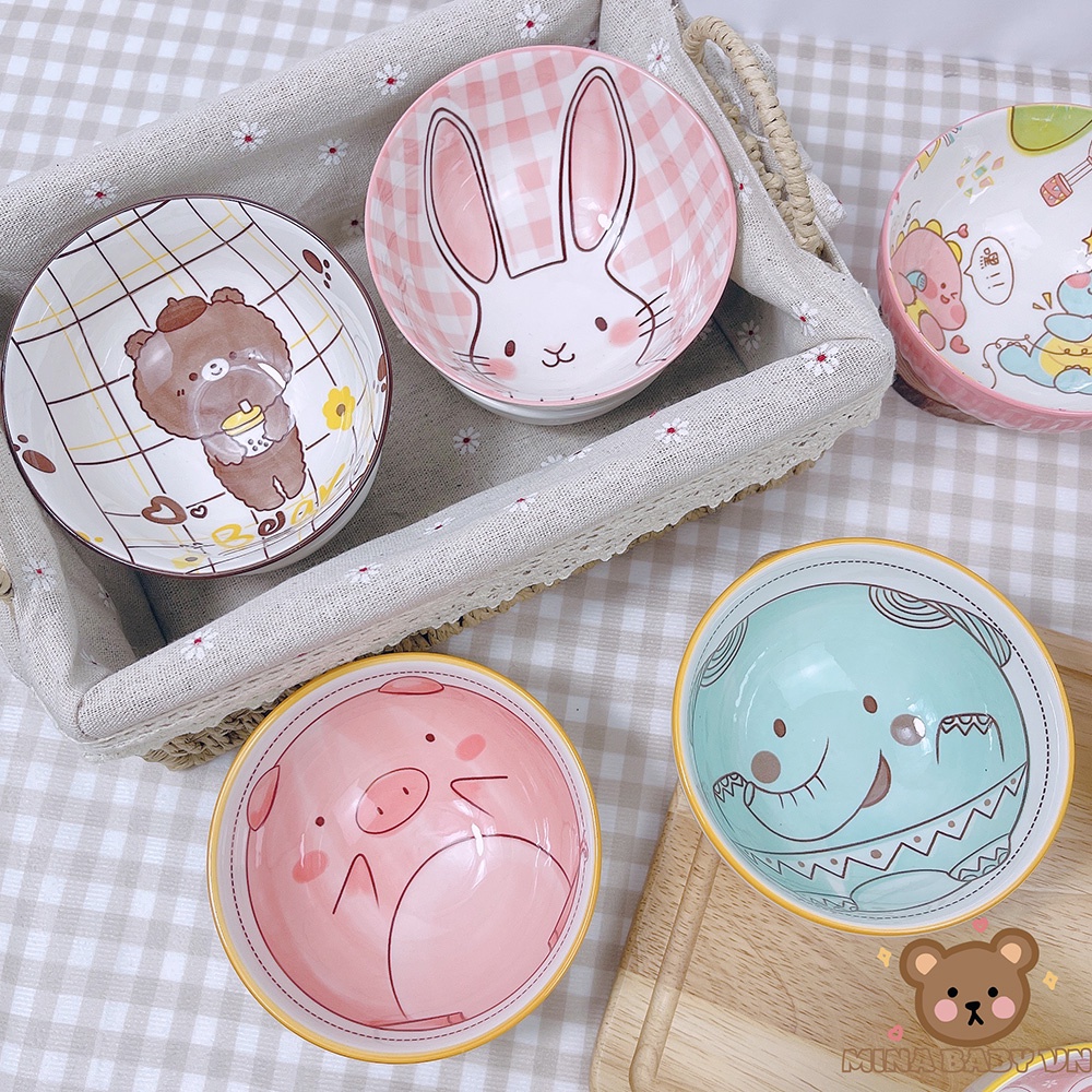 Bát sứ ăn dặm cho bé dung tích 200ml chất liệu gốm sứ cao cấp, bát ăn cơm gốm sứ cho bé hình dễ thương Minababyvn