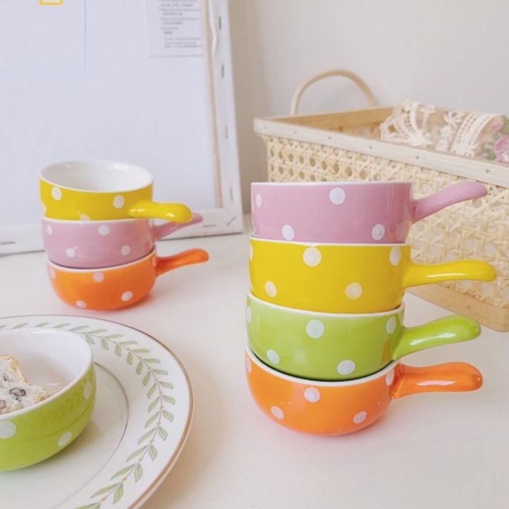 Bát Ăn Dặm, Bát Sứ Ăn Dặm Hình Chảo Chấm Bi Dễ Thương Chất Liệu Cao Cấp Chịu Nhiệt