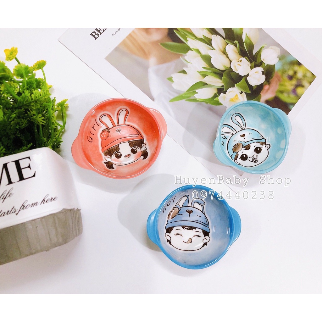 Bát Ăn Dặm Gốm Sứ Size Mini, Bát Ăn Cơm Bé Trai Bé Gái Decor Dễ Thương Cho Bé Bộ bát ăn dặm bằng sứ là những vật dụng vô cùng quan trọng và cần thiết, hỗ trợ đắc lực cho các mẹ chăm sóc các con yêu trong giai đoạn ăn dặm. Là vật dụng được tiếp xúc trực tiếp với trẻ do đó các mẹ cần chắc chắn lựa chọn những sản phẩm an toàn và chất lượng nhất đảm bảo an toàn không làm ảnh hưởng đến sức khỏe các con. Giới thiệu sản phẩm: - Dung tích: 100ml - Bát có thể bỏ được lò vi sóng, an toàn trong quá trình sử dụng. - Bát có hình ảnh đáng yêu giúp các bé có hứng thú khi ăn - bát cầm chắc chắn, không hề bị nóng