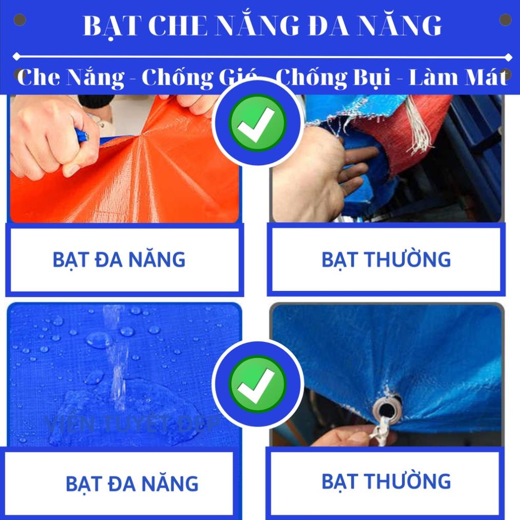 Giới thiệu Bạt Che Nắng Mưa - May Viền Đóng Khoen Sẵn - Chống Thấm Nước - Kích Thước 2x4 - Màu Xanh Cam - Nhựa Nam Việt