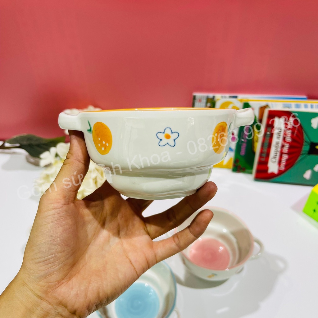 Giới thiệu Bát đĩa gốm sứ decor bát có hai tai dùng ăn dặm, ăn cơm trang trí món ăn cực cute đáng yêu