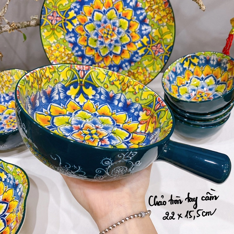 Chất liệu: gốm sứ cao cấp Họa tiết: Thổ cẩm Shop có bán cả theo set, quý khách cần mua theo set ib shop gửi link ạ Shop cảm ơn Quý khách đã tin tưởng và lựa chọn shop Hàng lỗi hoặc bể vỡ do vận chuyển quý khách ib shop ngay để được hỗ trợ đổi trả miễn phí Shop hỗ trợ đổi trả 3 ngày theo chính sách của sàn Mọi điều gì thắc mắc quý khách có thể ib hoặc gọi số 0973693619