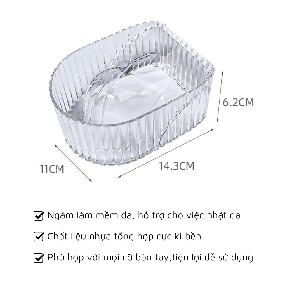 * Giới thiệu sản phẩm: - Bát ngâm tay được thiết kế nhỏ gọn phù hợp với mọi kích thước bàn tay của khách hàng, thuận tiện cho quá trình sử dụng cũng như di chuyển, cất giữ - Bát được thiết kế tinh tế, đẹp mắt phù hợp ngành làm đẹp - Chất liệu nhựa tổng hợp rất bền, có độ cứng cáp, màu sắc trong suốt như thủy tinh