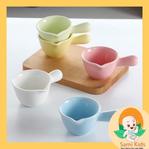 Giới thiệu Bát sứ ăn dặm hình gáo tay béo có tay cầm 100ml cho bé, tô chén gốm sứ ăn cơm cho trẻ em SAMI KIDS