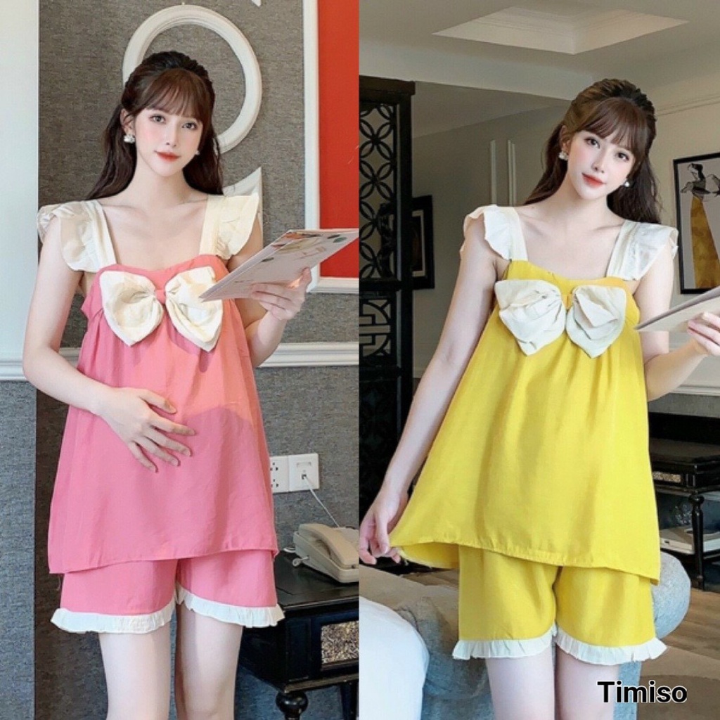 Bộ đồ bầu ĐÙI CHẤT ĐŨI CÁNH TIÊN thiết kế nơ trước tiểu thư xinh xắn dễ thương quần có chun chỉnh BĐ868