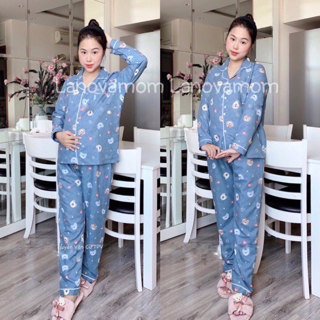Giới thiệu Bộ Bầu Pijama lanh lụa họa tiết cực xinh mặc Bầu kết hợp sau sinh