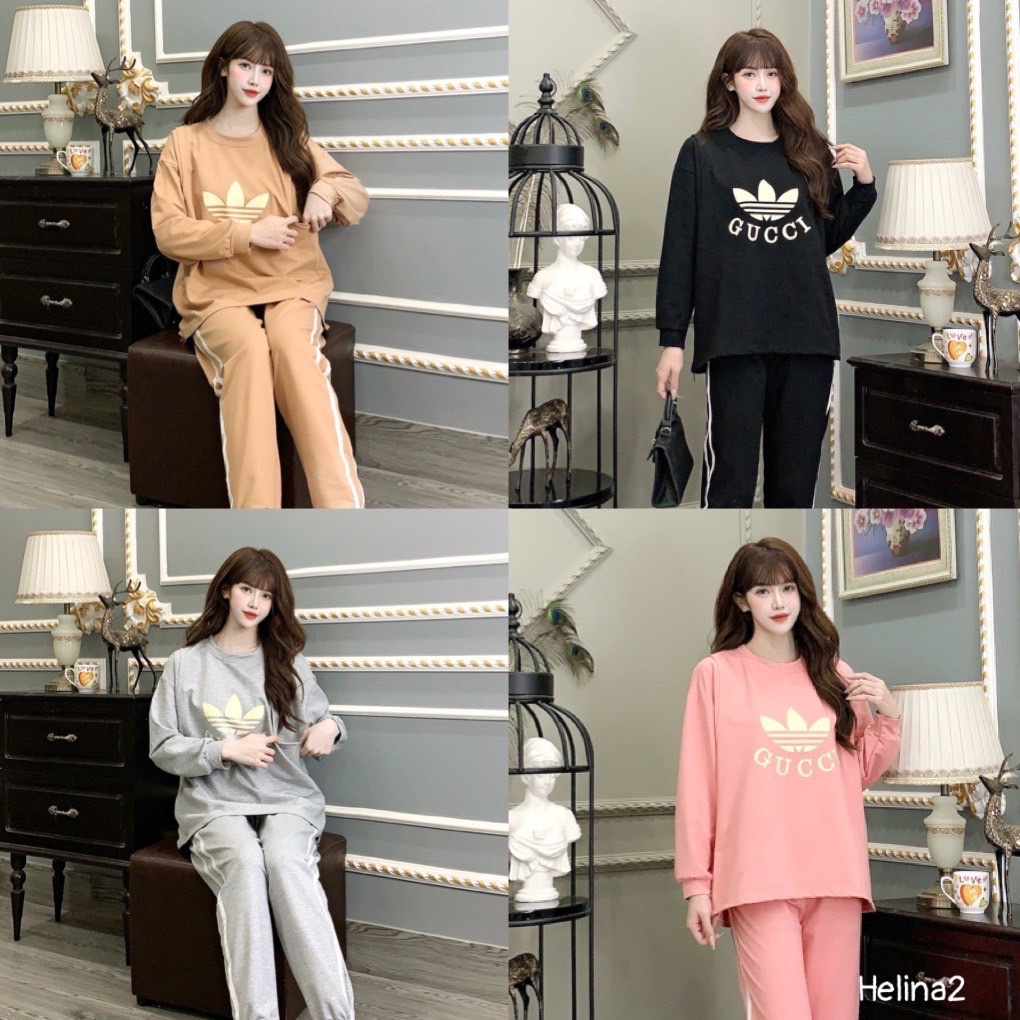 Giới thiệu Bộ đồ bầu thu đông dài tay chất liệu da cá dày dặn có phần vén cho con bú mặc bầu và sau sinh BD954