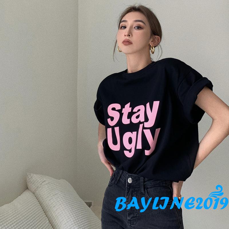 Giới thiệu BAY-Women Short Sleeve T-shirts Letter Print Summer Loose Casual Pullover Tops Blouse Streetwear