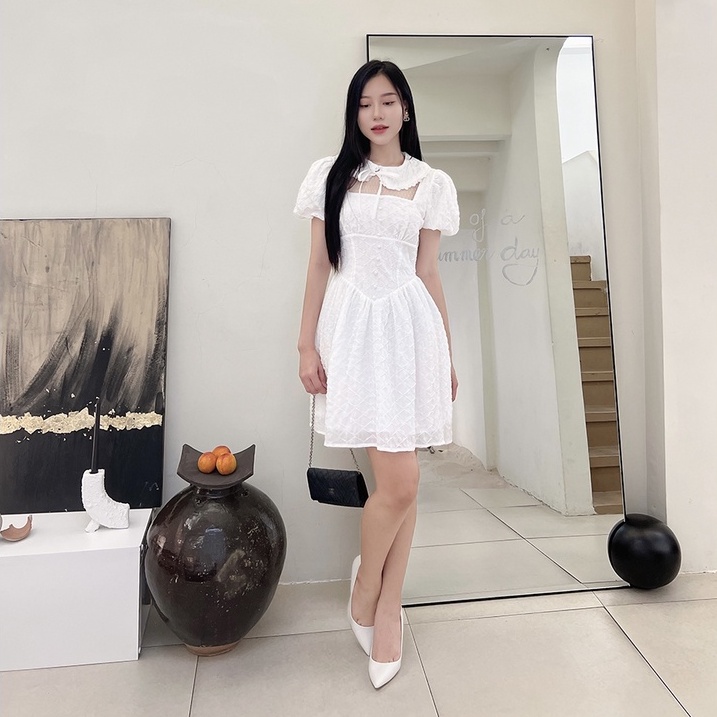 Giới thiệu BBSTORE'S Đầm Xòe Cổ Sen Tay Phồng Dự Tiệc -D1113