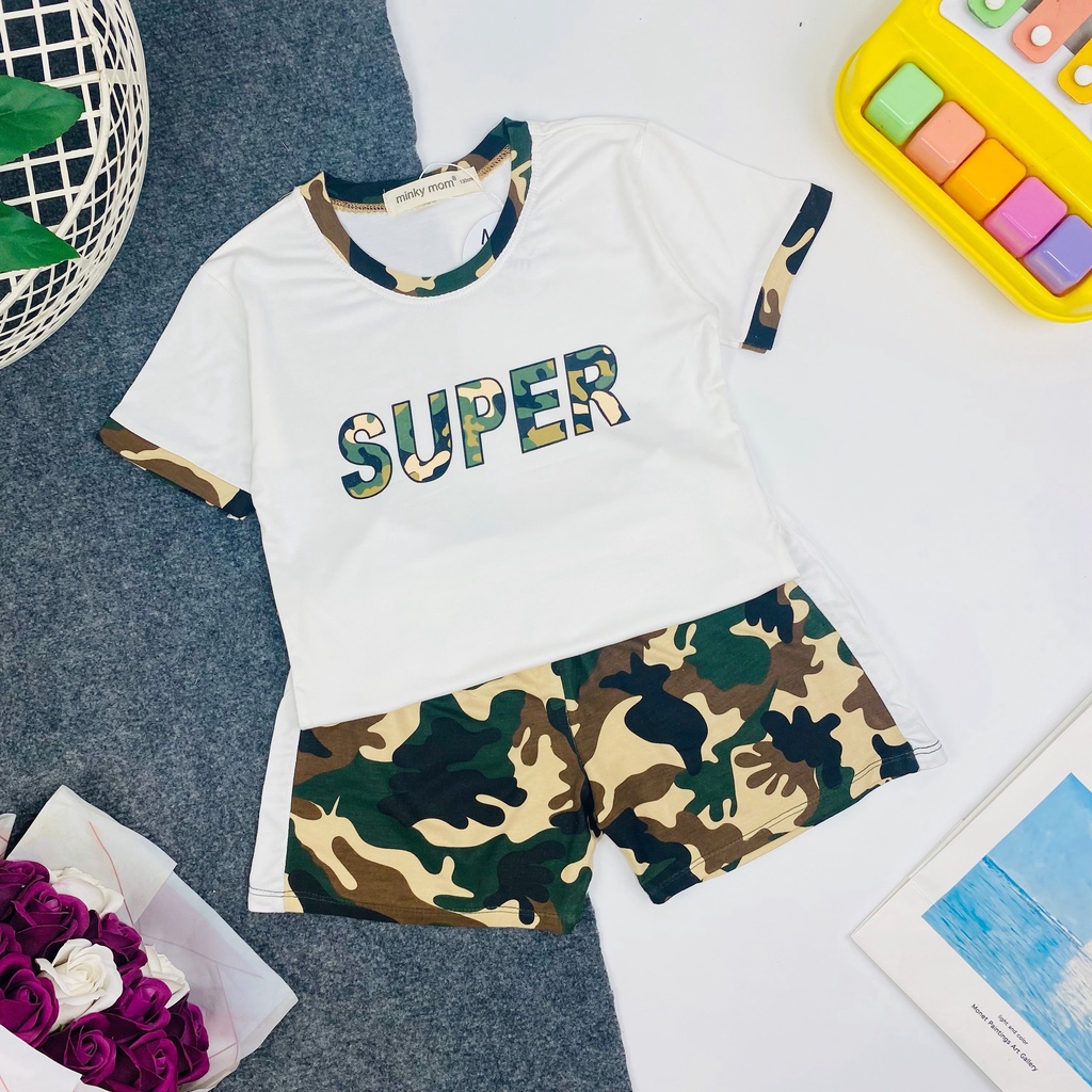 Giới thiệu [BÉ 20-30KG] Bộ Cộc Tay Bé Trai Minkymom Vải Thun Lạnh Họa Tiết Rằn Ri Bộ đội bé