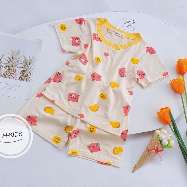 Giới thiệu [Bé 7-19kg] Bộ Ngắn Tay Thun Lạnh Minky Mom In Hình Toàn Thân Cho Bé Gái Bé Trai Từ 7-19kg
