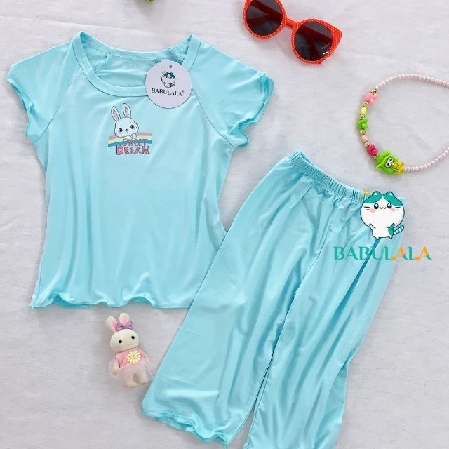Thời Trang Trẻ Em > Trang phục bé gái > Bộ quần áo > Đồ Bộ Bé Gái BABULALA Vải Thun Lạnh 8-18kg 1 2 3 4 5 6 Tuổi-Bộ Lửng Mặc Nhà Tem Cổ In Không Gây Ngứa-BLU01