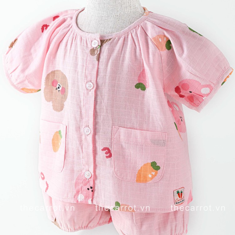 Giới thiệu Bộ đồ bé gái CARROT tay zaclang, hoạ tiết gấu carrot, chất Xô tre mềm thoáng mát thấm hút mồ hôi tốt