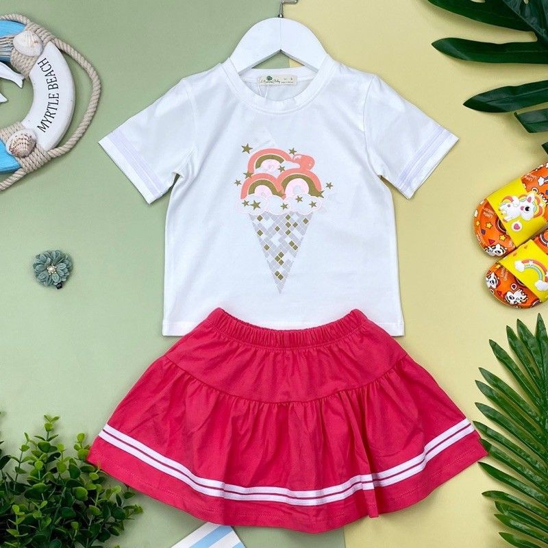 Bộ bé gái kèm chân váy in hình que kem. Chất cotton mát mịn, thấm hút mồ hôi. Size 4-10 từ 13-42kg