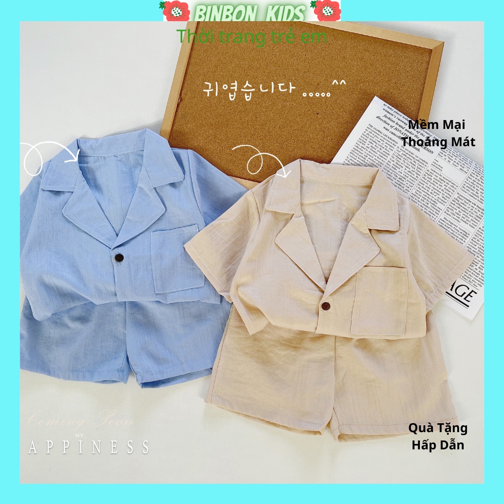 Giới thiệu Đồ bộ bé trai, Bộ quần áo bé trai Bộ Véc Vải Đũi Xước Hàn Trơn Cao Cấp Cho Bé Từ 8-27kg BINBON KIDS