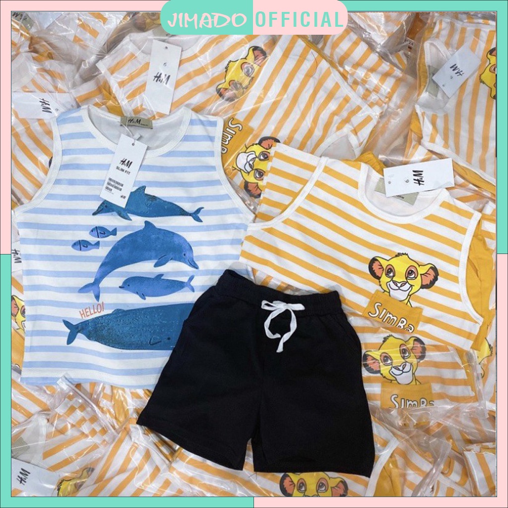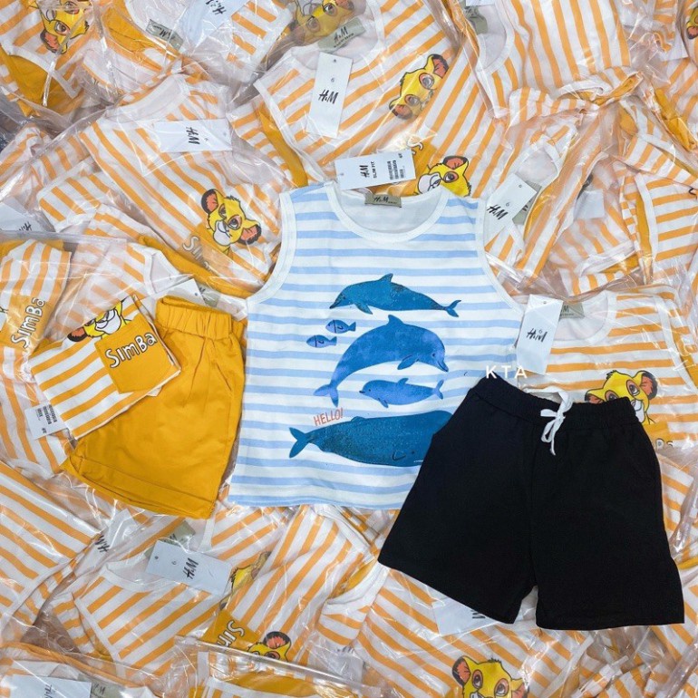 Đồ bộ bé trai gái combo 2 bộ đồ cho bé mùa hè chất cotton xuất dư họa tiết cá voi Dolphin JIMADO 55579097598