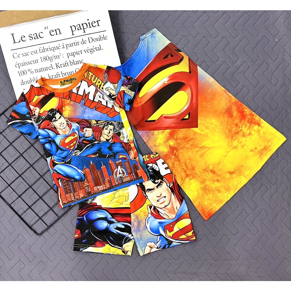 Giới thiệu Đồ bộ bé trai siêu nhân, bộ bé trai người nhện 3D thun lạnh có choàng Jennie kids J470