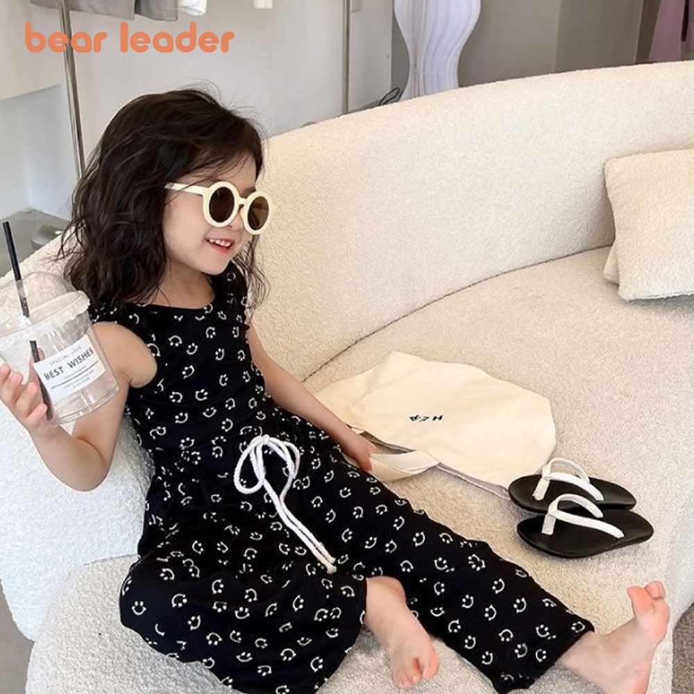 Thời Trang Trẻ Em > Trang phục bé gái > Bộ quần áo > BEAR LEADER Bộ Áo Thun In Hình Mặt Cười + Quần Ống Rộng Thời Trang Mùa Hè 2023 Dành Cho Bé Gái 2-8 Tuổi