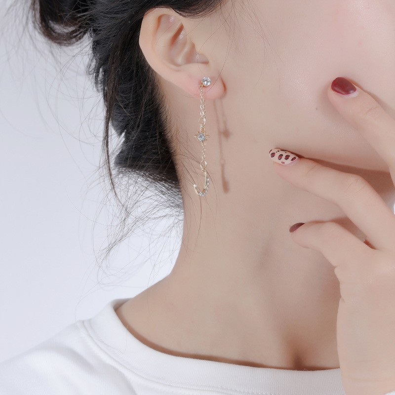 Giới thiệu Beautiful Moon Shaped Long Earrings Korean Style Unique