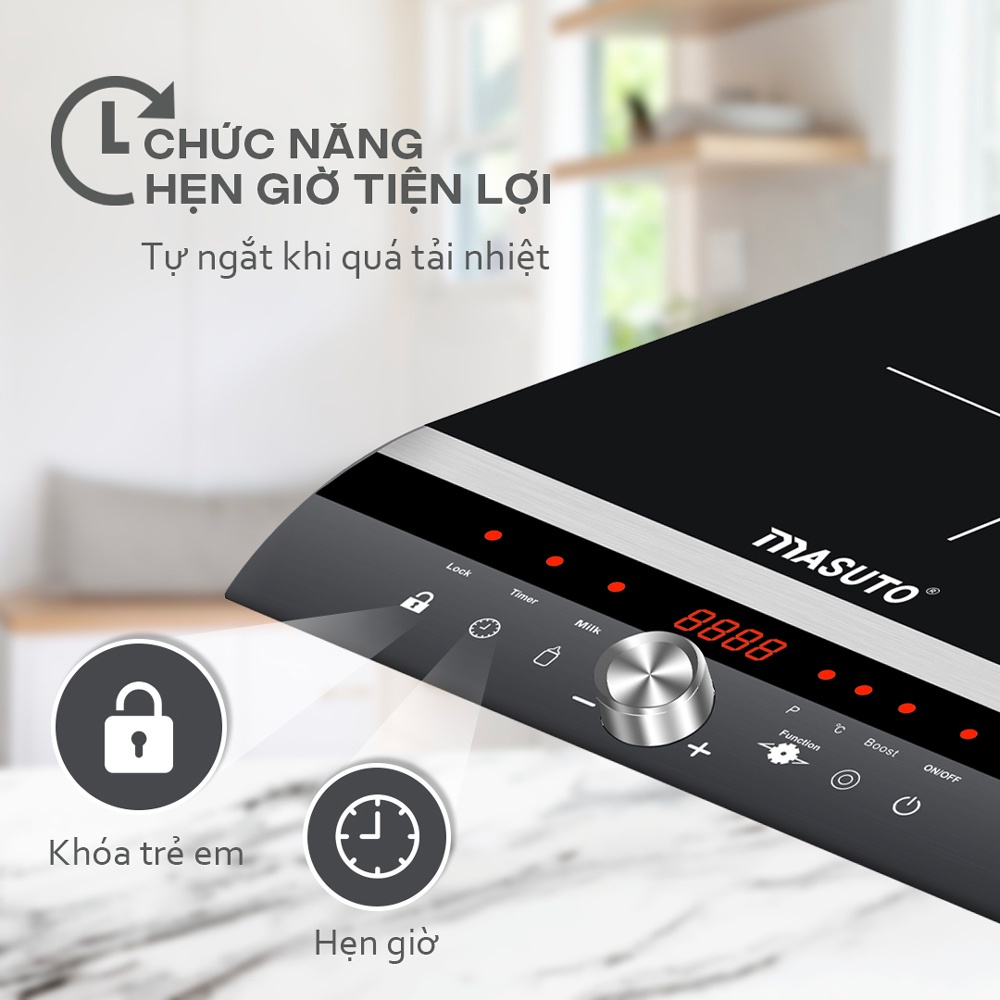 Bếp điện từ đơn cảm ứng Masuto MS-ID2000 kính cường lực siêu bền- Tặng kèm nồi lẩu