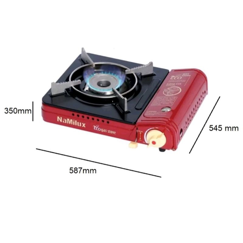 Gas Stoves mini Eco Namilux PL 1911PF Model: PL 1911PF Brand Namilux, made in Vietnam gas cans mini Butane ( L.P.G ) power : 2.6kW (2200 kcal/h) 185 g/h Eco Van: inline cut weight: 1.3Kg dimension : 102 x 332 x 280 mm colour: random not include gas cans mini Butane ( L.P.G )