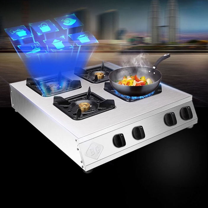 Bếp gas 4 họng sử dụng hệ thống đánh lửa tiên tiến, lên lửa cực nhanh và không phải lo thay pin bất tiện như đánh lửa IC Bếp gas 4 họng cho hiệu năng cao, lửa lớn , mạnh, giúp việc chế biến các món ăn, món xào , món chiên, nước sốt… với lửa lớn Dùng phục vụ đun sôi nhiều nồi trong cùng thời gian mà ko lo mất thời gian chờ của khách hàng. Giải pháp hữu hiệu cho khâu thời gian, giúp tình trạng ổn định khách THÔNG SỐ KỸ THUẬT: + Kích thước: 4 họng vuông: 47x56x10cm + Tên sản phẩm: Bếp gas 4 lò + Chất liệu khung: inox dày + Chất liệu kiềng: Sắt sơn tĩnh điện + Tính năng đặc biệt: Ngọn lửa toả đều + Bếp được sử dụng 1 bình gas ⛵
