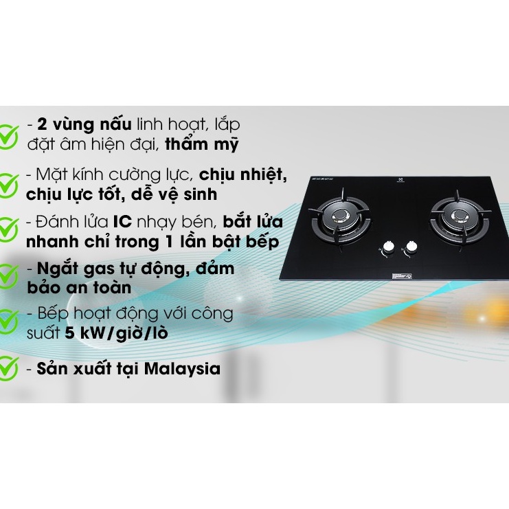 Giới thiệu Bếp gas âm Electrolux EGT7627CK Mới 100% ,Tặng Kèm DÂY NGẮT GAS TỰ ĐỘNG