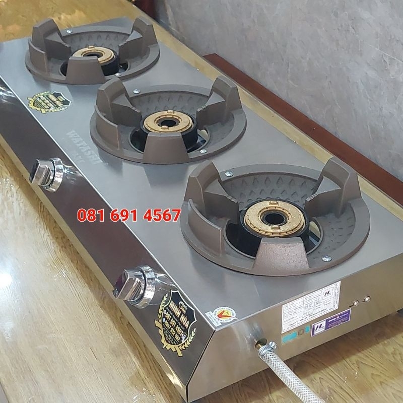Bếp Gas khè 3 lò bán công nghiệp chất lượng cao WATASHI KIÊNG ĐÚC SIÊU DÀY NÚT INOX 100% SIÊU BỀN KHÔNG LO VỠ NÚT 👉Sử dụng khung inox 430 sáng bóng