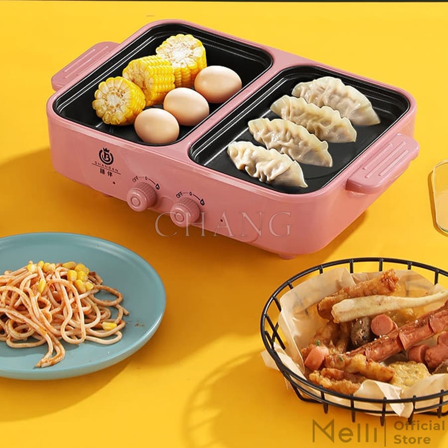 Bếp Lẩu Nướng 2 Ngăn SHABAN Cao Cấp,Nồi Lẩu Nướng 2 In1 Điều Chỉnh Nhiệt Độ Siêu Chống Dính, Đa Năng, Tiện Lợi