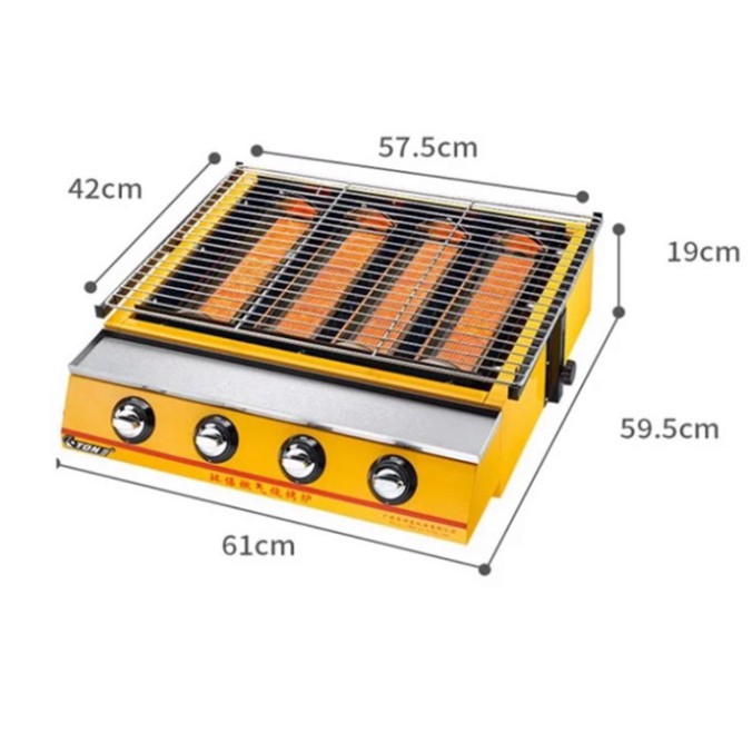 Các món nướng như thịt, cá, hải sản... vốn được rất nhiều người ưa chuộng. Tuy nhiên, do khi nướng bằng than hoa, khí than ám vào thực phẩm gây hại không chỉ đến đường hô hấp mà còn ảnh hưởng tới cả các bộ phận khác trong cơ thể. Tuy nhiên, mọi vấn đề bạn đều có thể được giải quyết bằng bếp nướng bằng gas đa năng ET - K255. Bếp sử dụng gas nhưng gas không trực tiếp nướng thịt mà sẽ đốt qua gốm sứ rồi tỏa nhiệt ra đều khắp bếp để làm thịt chín đều mà vẫn giữ được chất dinh dưỡng cũng như độ tươi ngon hấp dẫn của thực phẩm. Bếp nướng gas ETON ET-K255 là loại bếp nướng gas 4 đầu đốt, có thanh đốt dài hơn dòng ET-K222. ETON ET-K255 có thiết kế gọn nhẹ, tiện lợi dễ mang theo, phù hợp cho gia đình, các chuyến đi picnic, dã ngoại... Bên cạnh đó bếp nướng gas ETON ET-K255 thích hợp sử dụng ở các gian hàng thức ăn nhanh Cấu tạo bếp nướng gas BBQ 4 đầu đốt ET-K255 - Thiết bị tạo nhiệt: Là nơi nhiệt tỏa nhiệt lượng để nướng thực phẩm,sử dụng gốm chịu nhiệt có độ bền cao chống nứt, vỡ khi nung. - Nắp che mặt nhiệt: Sử dụng thanh che mặt gốm bằng inox có đục các lỗ để thoát nhiệt. - Vỉ nướng: Vỉ nướng được làm bằng inox 304 sáng bóng dễ vệ sinh khi thực phẩm bám vào. - Chốt hãm vỉ nướng: Chốt hãm vỉ nướng có tác dụng khóa chặt vỉ nướng khi cần nâng lên hoặc hạ xuống theo nhu cầu của người sử dụng. - Khay hứng mỡ thừa: là khay được đặt dưới các thanh gốm đốt hững mỡ thừa hoặc mảnh vụ thực phẩm rơi ra. - Đường lắp dây gas: Là nơi nối dây gas vào máy. - Khay hứng gia vị:Khay này thường để các chổi quết gia vị hoặc thanh xiên - Núm điều chỉnh gas: Là van bật to nhỏ điều chỉnh nhiệt độ nướng. THÔNG SỐ KỸ THUẬT: + Tên sản phẩm: Bếp nướng gas ETON + Model: ET-K255 + Kích thước: 560x560x180mm + Kích thước vỉ nướng: 520x400mm + Trọng lượng: 14kg + Nướng liên tục 💖💖💖 CHẤT LƯỢNG LÀ SỐ 1 - KHÁCH HÀNG LÀ THƯỢNG ĐẾ 💖💖💖