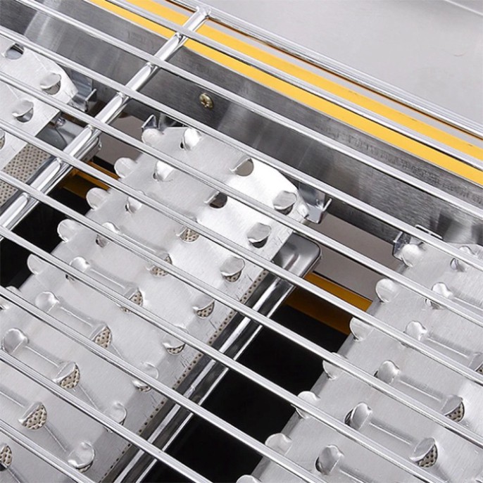 THÔNG SỐ KỸ THUẬT: + Model: ET- 6 họng + Dùng gas + Loại 6 họng + Kích thước: 800x580x180mm + Kích thước buồng đốt: 790x420mm Bếp nướng BBQ 6 họng là thiết bị chuyên dùng nướng hải sản, nướng thịt, nướng cá trong nhà hàng lẩu nướng, tiệc buffet. Món nướng là món ăn vô cùng hấp dẫn với các loại gia vị khác nhau sẽ cho chúng ta thưởng thức các món nướng khác nhau - Thiết bị tạo nhiệt: Là nơi nhiệt tỏa nhiệt lượng để nướng thực phẩm,sử dụng gốm chịu nhiệt có độ bền cao chống nứt, vỡ khi nung. - Nắp che mặt nhiệt: Sử dụng thanh che mặt gốm bằng inox có đục các lỗ để thoát nhiệt. - Vỉ nướng: Vỉ nướng được làm bằng inox 304 sáng bóng dễ vệ sinh khi thực phẩm bám vào. - Chốt hãm vỉ nướng: Chốt hãm vỉ nướng có tác dụng khóa chặt vỉ nướng khi cần nâng lên hoặc hạ xuống theo nhu cầu của người sử dụng. - Khay hứng mỡ thừa: là khay được đặt dưới các thanh gốm đốt hững mỡ thừa hoặc mảnh vụ thực phẩm rơi ra. - Đường lắp dây gas: Là nơi nối dây gas vào máy. - Khay hứng gia vị:Khay này thường để các chổi quết gia vị hoặc thanh xiên - Núm điều chỉnh gas: Là van bật to nhỏ điều chỉnh nhiệt độ nướng. 💖💖💖 CHẤT LƯỢNG LÀ SỐ 1 - KHÁCH HÀNG LÀ THƯỢNG ĐẾ 💖💖💖