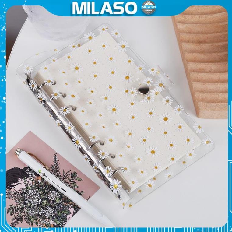 Giới thiệu sản phẩm Bìa sổ còng MILASO sổ còng A6 6 lỗ họa tiết hoa cúc kèm phụ kiện phân trang, túi đựng, giấy SN-001392